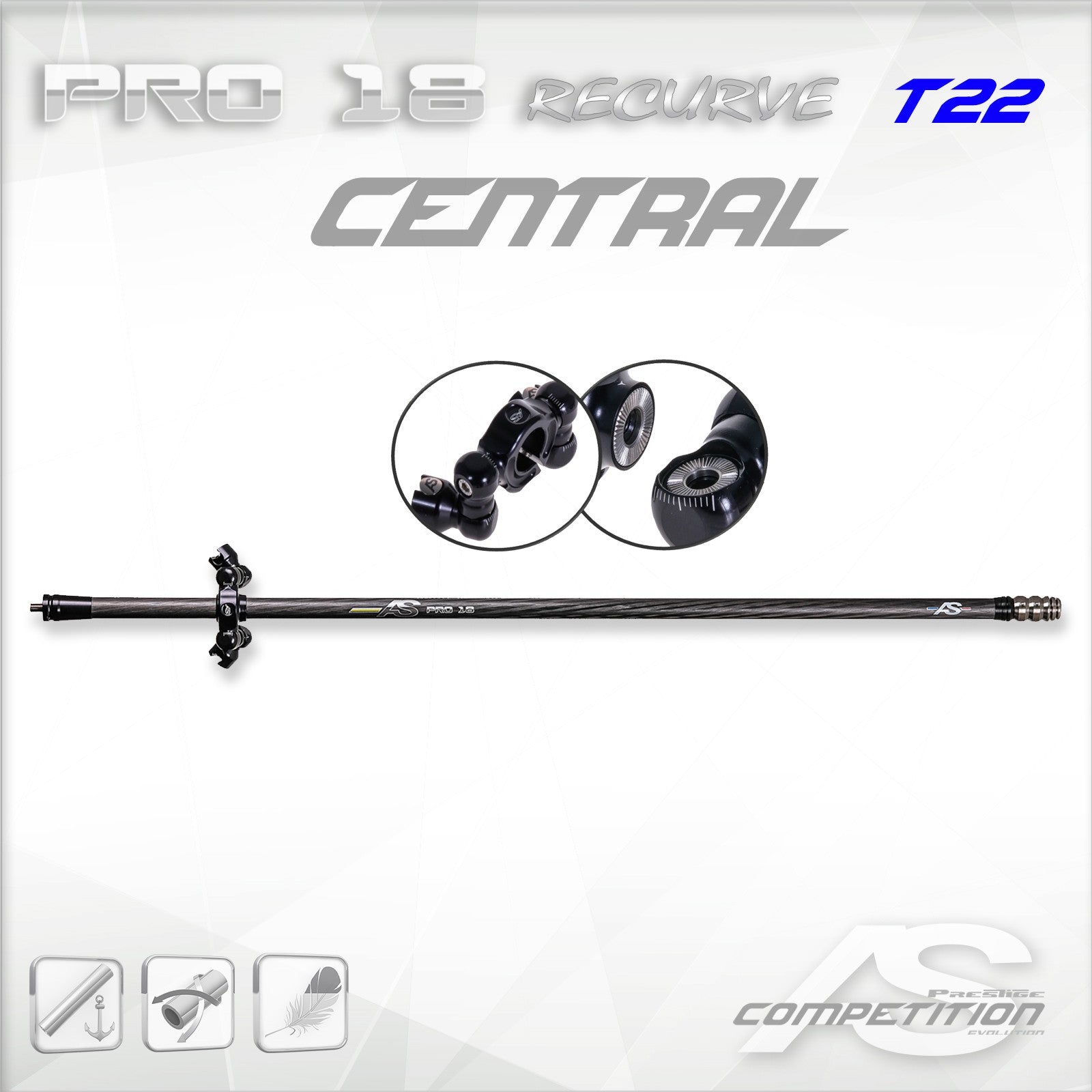 Central bar 18mm for recurve bows, with integrated and sliding VBAR (not removable). Central bar only with integrated and sliding VBAR COMPETITION. Weights fixing tulip included (T18/22). T22 comes with 2 intermediate weights and 1 finishing weight (22mm and 30g each). Dimensions from 70 to 85cm (27.5 to 33.5in), every 5cm (2in). Tightening wrench supplied.