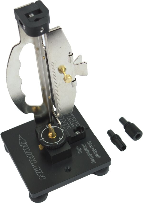 Vertical fletching jig from Avalon. Possibility to fletch 3 or 4 vanes. Very stable jig gives regularity in fletching. Offset vane position is possible. Includes straight clamp and adapter for crossbow bolts....