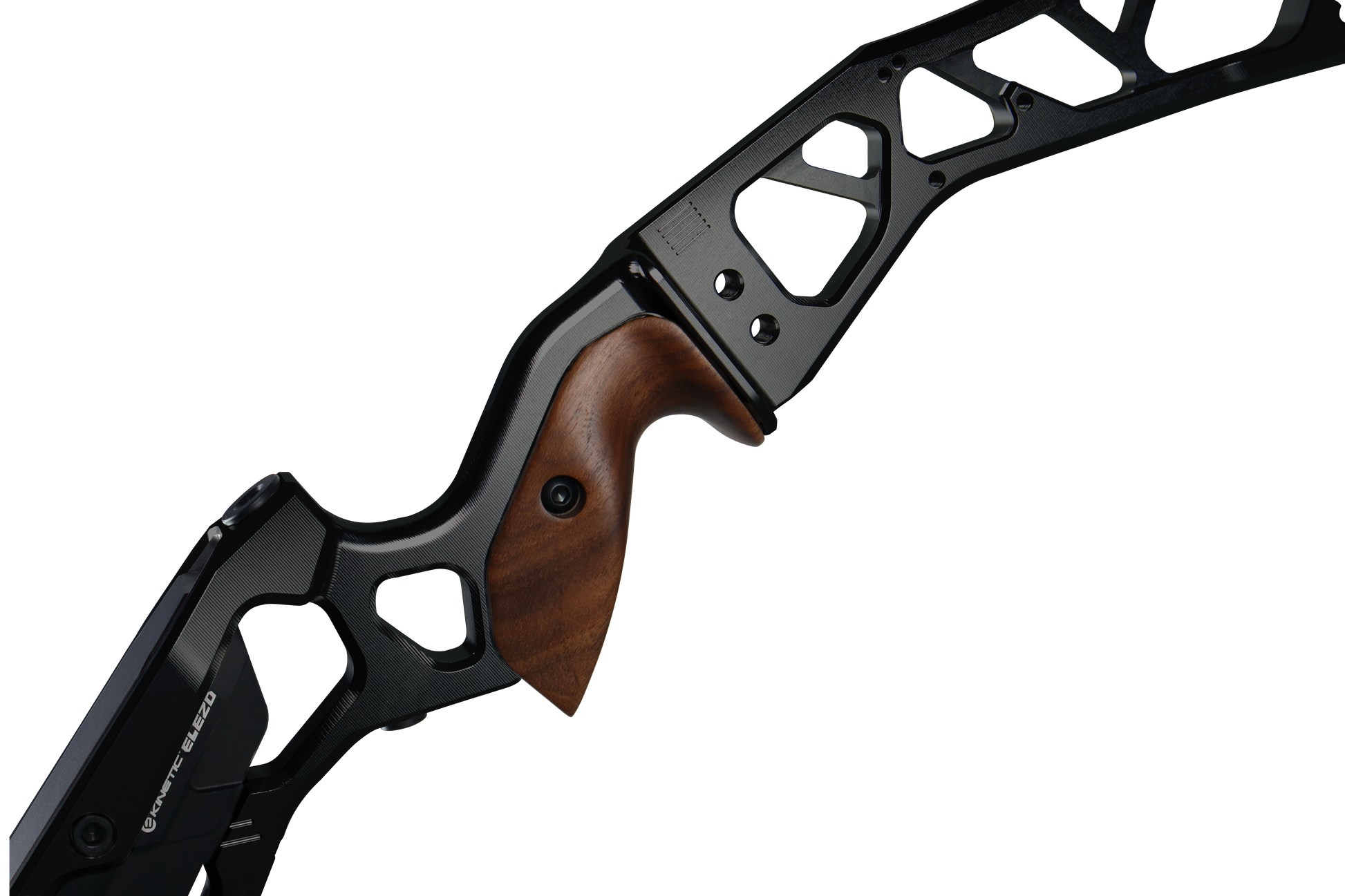 The Kinetic Elezo Hybrid Barebow Riser is designed for archers who value precision, versatility, and value—without compromise. Whether you're training for competition or switching between Olympic recurve and barebow, the Elezo delivers dependable performance in a refined, balanced design. CNC-machined from 6061-T651 aluminium, this riser offers increased rigidity and control, ensuring consistent feedback and reduced flex under pressure. Its geometry is tailored specifically for barebow shooting, while remaining compatible with Olympic-style setups for added versatility. The integrated 330g riser weight enhances stability, and the included wooden grip provides a natural and secure hand fit. With a high-end finish and competitive price point, the Elezo gives you more control, more balance, and more potential—every shot, every round.