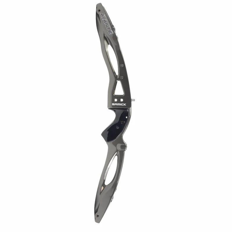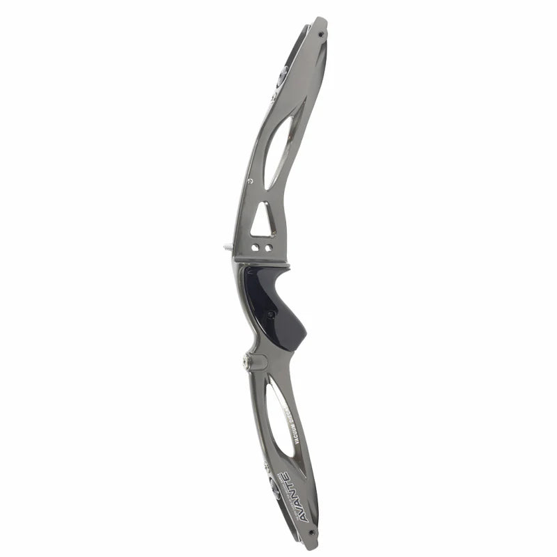 The stunning looking Avante is a perfect 25 inch recurve riser at a great price. Featuring an ergonomic bow design with a vibration damping device in the limb pockets protects the archers wrist and arm. The design carries a great combination of performance and appearance. The bow can be easily centered with a tiller adjustment that adjusts side to side as well as up and down. RH models only. 1220g mass weight. Aluminium CNC die cast riser with plastic grip. International Limb Fitting (ILF)....