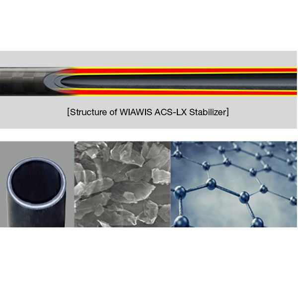 The ACS-LX stabilizer uses high tech materials such as graphene carbon to improve stiffness and stability. The design also maximises performance through WIAWIS's unique carbon pattern tapered structure design.