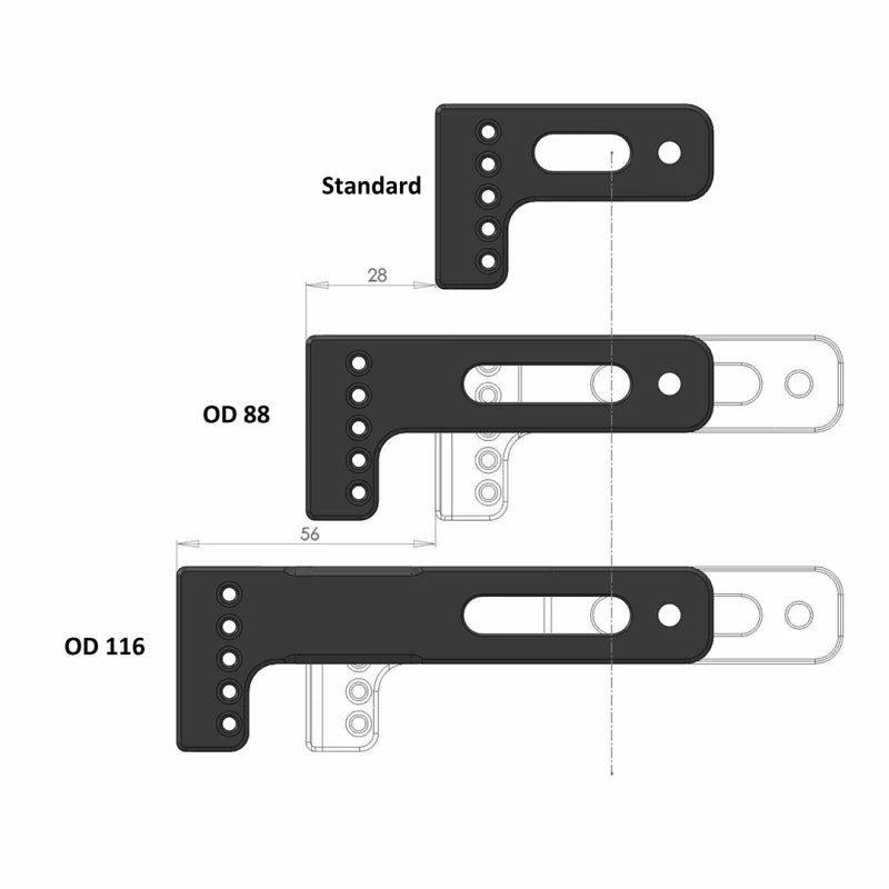 - Available as standard, 28mm overdraw (OD88) or 56mm (OD116) overdraw models