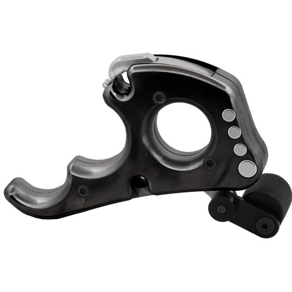 It features a very adjustable and user friendly thumb safety. The hook is fully enclosed, locking on to the D-loop, with an easily accessible quick release button to open the jaw without needing to fire the release.