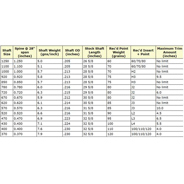 Weight - Due to the barrel design of the ACE, the weight is and average grains per inch of a 29in shaft. Shaft weight is slightly heavier in the larger diameter centre and lighter towards the tapered ends. One inch of shaft cut from the point end typically weighs 5-6 grains.