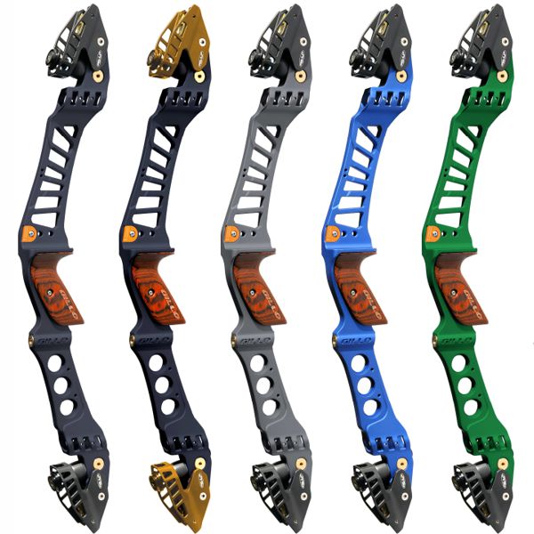 Recurve aluminium milled riser with new Tunnels design for accepting round balancing plugs (included). Dual colour anodized finish. ILF - International Limb Fitting. Features Gillo floating limb pockets for more than 40% poundage adjustment range. Integrated vibration reduction system. Stainless steel limb bolts. Wood laminated advanced grip. Riser sleeve included. Compatible with G1 and G4 barebow weights. Mass weight 1440g.
