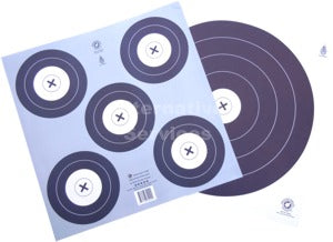 Official NFAA licensed faces. This NFAA Indoor Blue Dual Face 40cm measures 17 inches square and features a single spot face on one side and a five spot multi face on the other side. Produced from 100# tag (card) stock....